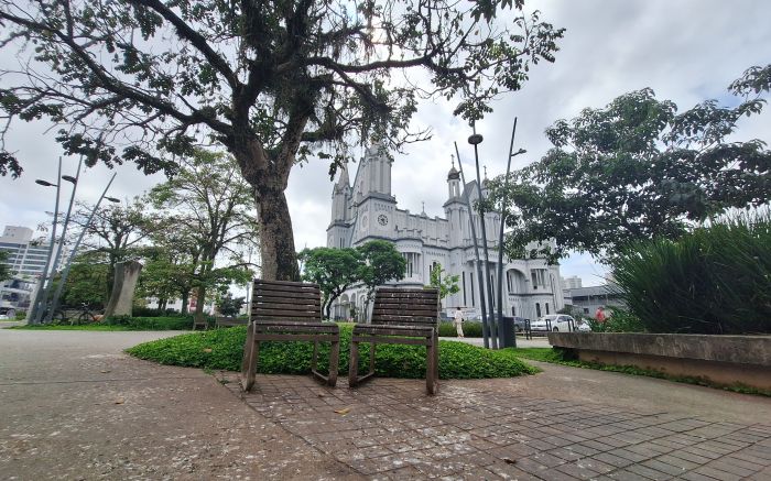 A Praça Governador Irineu Bornhausen, também conhecida como Largo da Matriz, conta com bancos bem confortáveis mas que não podem ser utilizados pelos cidadãos porque vivem extremamente sujos, principalmente com fezes de passarinhos. Pelo menos a cada seis meses a Prefeitura deveria passa...