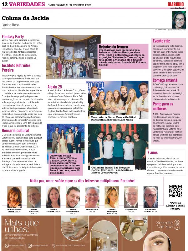 Quando outubro chegar teremos na terrinha o Festival de Ballet Infantil 2025, marcado para o dia 25/10, no Auditório do Centreventos. Sem caráter competitivo, o festival tem como objetivos estimular crianças a continuarem no ballet, valorizar professores, incentivar a prática da dança e formar novas...