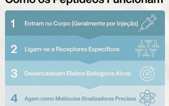 Diferente de medicamentos genéricos que “empurram” o organismo, os peptídeos orientam o corpo a funcionar melhor, respeitando a fisiologia.