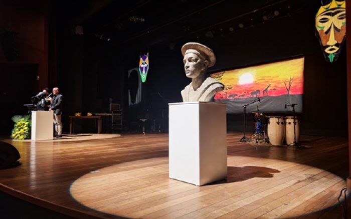 Interessante observar durante a cerimônia que os dois bustos de negros que ornavam a frente do palco principal faziam referência à História: Marcílio Dias e o escravizado Simeão. Isso demonstra a importância da disciplina de História no projeto ‘Itajaí sem racismo’ que deve ganhar corpo em todas as escolas da Rede Municipal de Itajaí.