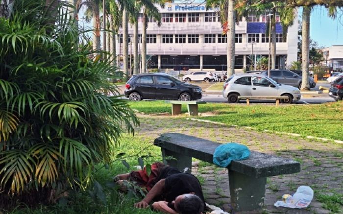 O Governo Robison está prestes a completar um ano e ainda não conseguiu dar uma resposta satisfatória à questão crucial dos moradores de rua. Quem quiser ter uma boa noção do que está acontecendo em Itajaí neste setor nem precisa ir muito além dos jardins da própria Prefeitura. Nessa segunda-feira, por exemplo, encontrei na Praça da Bíblia, cinco moradores de rua.