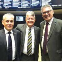 Enturmou-se - Osvaldo da Mancha Branca Mafra (SD) assumiu, ontem, como deputado federal pelos próximos quatro meses. Na imagem ao lado dos deputados federais e presidentes estaduais do DEM, João Paulo Kleinubing e do PMDB, Mauro Mariani