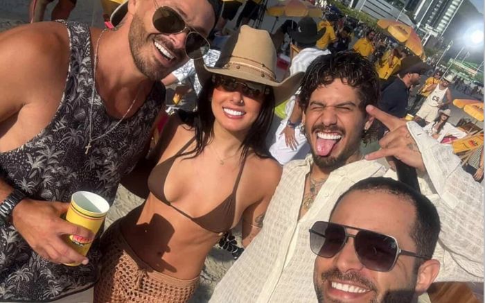 Sertanejos em BC - Registro da passagem dos cantores Ana Castela e Zé Felipe por Balneário Camboriú nesta semana. O casal sertanejo veio à região para gravar o projeto audiovisual Agroplay. O modelo Thomaz Martins e o corretor de imóveis Sulivan Ferreira também participaram das gravações.
