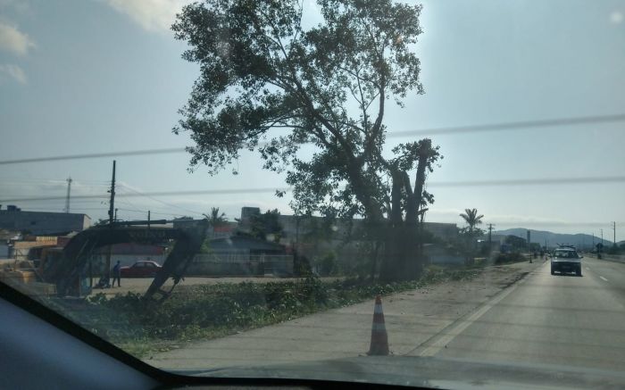 Árvore é cortada no acesso de Navegantes