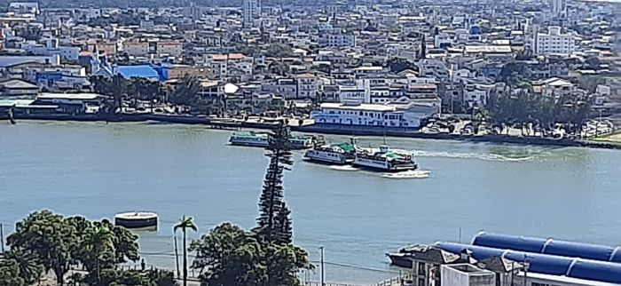 Moradores fizeram imagens do alto dos prédios do centro de Itajaí flagrando um ferry boat à deriva, na manhã de sexta-feira, durante a travessia pelo rio Itajaí-açu, entre Navegantes e Itajaí.