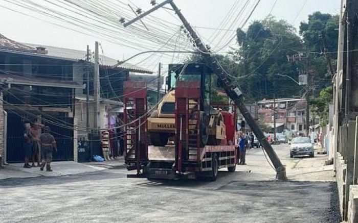 Máquina da prefeitura derruba poste e deixa Matadouro na escuridão