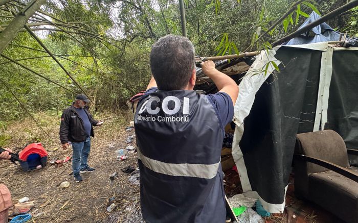 Uma invasão em área de mata no bairro da Barra, em Balneário Camboriú, foi desmontada na última quarta-feira. A ação foi da Diretoria de Contenção de Ocupações Irregulares e Degradação Ambiental (DCOI), com apoio da Guarda Municipal, da Abordagem Social e da secretaria de Obras da região sul.