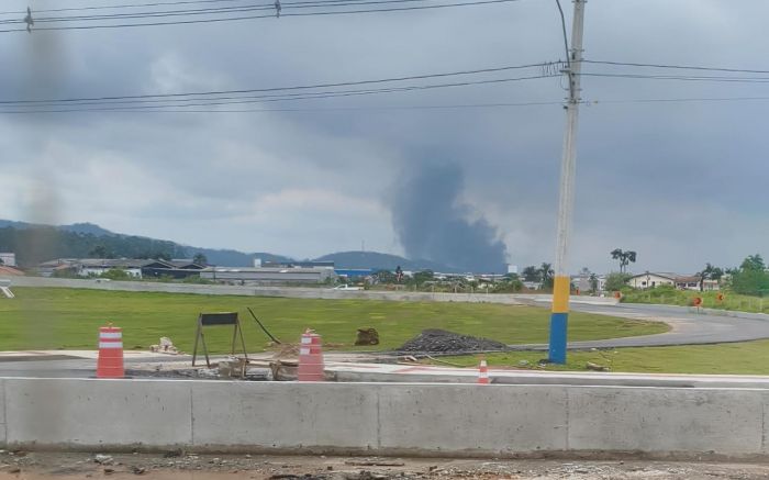 Um incêndio atinge, desde as 12h15 desta quarta-feira, uma empresa de fabricação de módulos para contêineres na rua Onildo Reis, no bairro Cordeiros, em Itajaí. A intensa fumaça preta pode ser vista de diversos pontos da cidade, inclusive da BR 101.