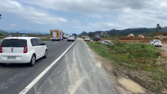 Segundo os Bombeiros Voluntários de Ilhota, o Fiat Punto foi parar na vala lateral e o Toyota na vala central. No Punto estavam o motorista, C.A., de 55 anos, e duas passageiras: P.F.M.P., de 33, e P.A.M., de 16. Todos tiveram ferimentos leves, e a adolescente foi encaminhada para avaliação médica no postinho.