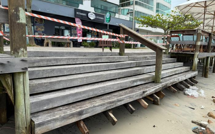 A força do mar provocou estragos no calçadão e nos deques da orla de Itapema entre a noite de segunda e a madrugada desta terça-feira. O avanço das ondas atingiu principalmente a Meia Praia, arrastando areia, quebrando estruturas de madeira e deixando trechos do calçadão danificados. A prefeitura montou uma força-tarefa para conter os impactos da ressaca e garantir a segurança dos frequentadores.