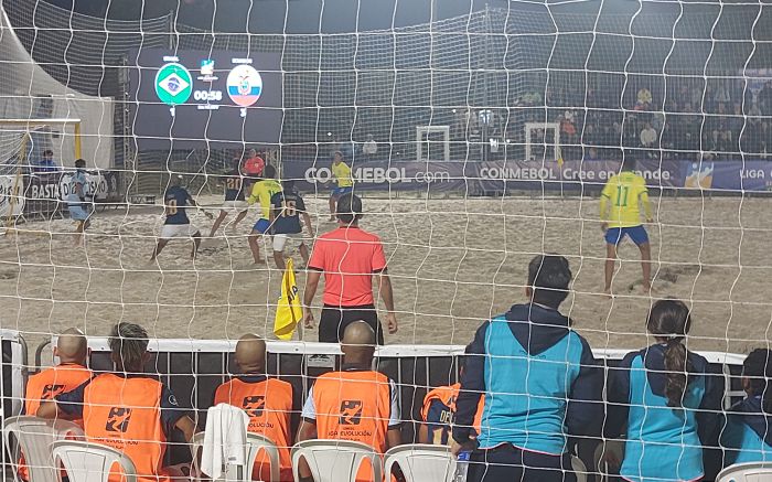 A garotada do sub-20 foi a primeira a sentir o gostinho da competição. Com a torcida jogando junto, a seleção brasileira estreou no torneio sul-americano de futebol de areia contra o Equador.