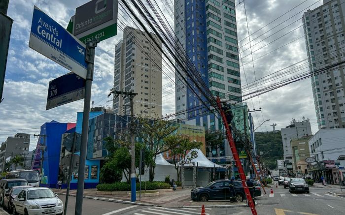 Aquela fiaceira que enfeiava os postes da avenida Central, em Balneário Camboriú, começou a sumir. A força-tarefa da Cosip (Contribuição para o Custeio da Iluminação Pública) fez uma limpeza pesada na manhã de quarta-feira e retirou cerca de uma tonelada de cabos velhos, soltos e em desuso.