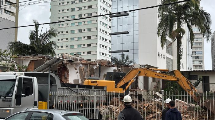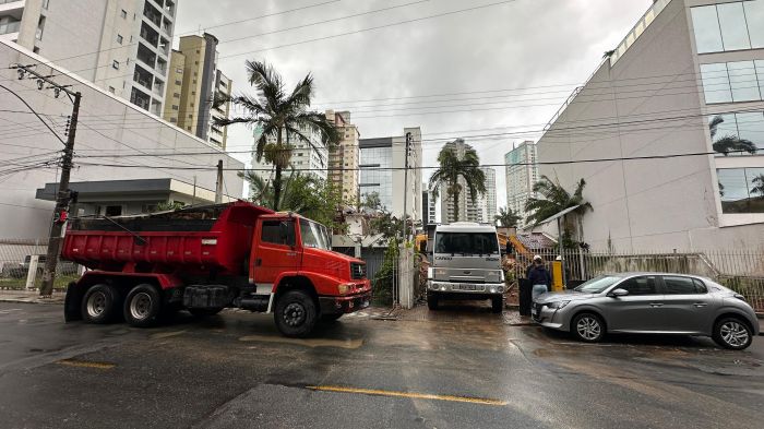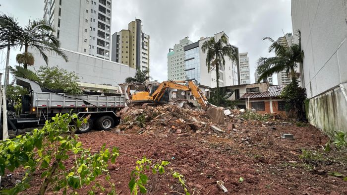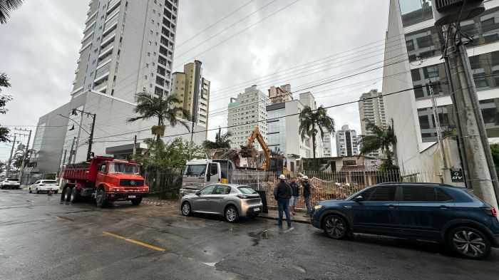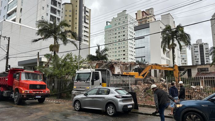 Começou embaixo de chuva, nesta quinta, a demolição das três casas abandonadas que ficam lado a lado na rua Telêmaco Pereira Liberato, no bairro Fazenda, em Itajaí. Os imóveis estavam tirando o sossego dos moradores da região, pois tinham se transformado em ponto de uso de drogas e esconderijo para criminosos.