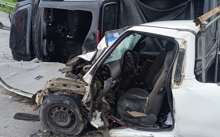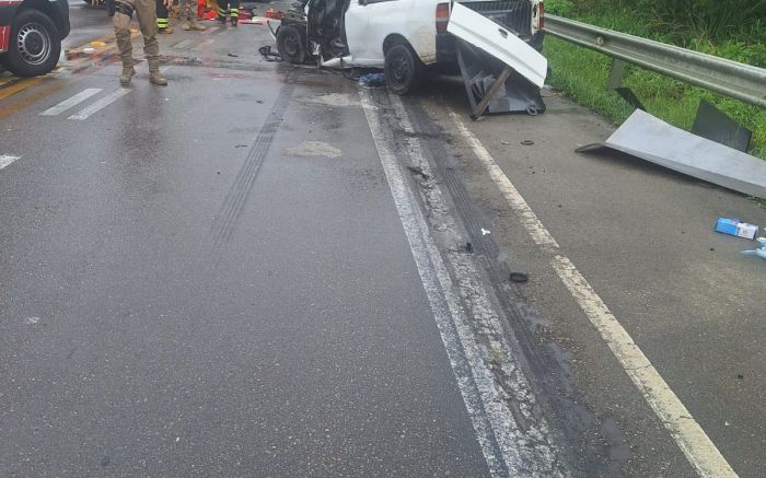 Dois motoristas, de 53 e 61 anos, ficaram presos às ferragens depois de uma batida de frente entre uma Courier e uma Ford Ranger, na manhã desta sexta-feira, na entrada do loteamento Schneider, na rodovia Jorge Lacerda, em Ilhota.