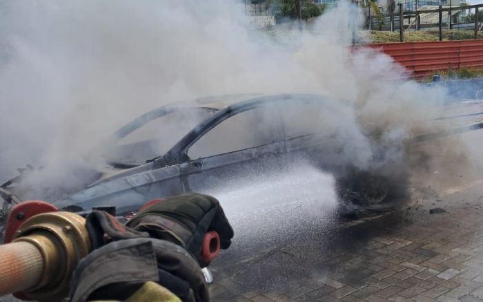 Um Ford Fusion foi tomado pelas chamas no sábado, na avenida José Temístocles de Macedo, a beira mar de Balneário Piçarras, situação que chamou a atenção na orla do Itacolomi, no norte da cidade, em frente a um grande conjunto de prédios.