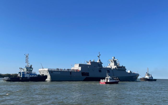 A visita a Itajaí será encerrada no estaleiro das fragatas, em recepção conduzida pelo diretor-executivo do consórcio Águas Azuis, Fernando de Queiroz. Os representantes do governo federal vão conhecer a fragata Tamandaré, o primeiro navio militar do programa construído em Itajaí e em fase de testes finais pra entrega à Marinha do Brasil até o final do ano.