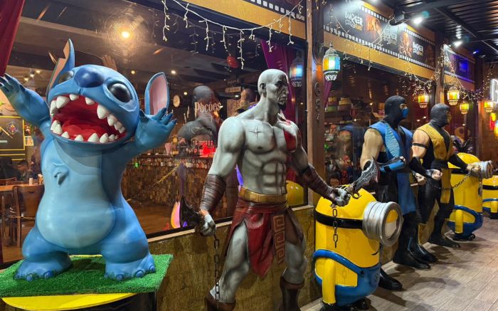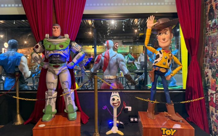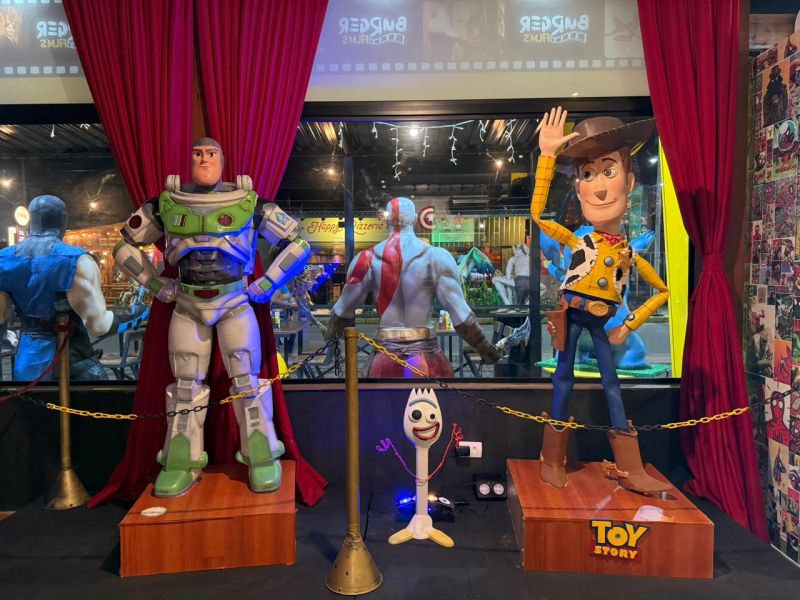 O que mais encanta no Burger Films é o cuidado com os detalhes. Tudo é temático — e quando dizemos tudo, é tudo mesmo: do cardápio à decoração, dos drinques ao bar, das paredes ao banheiro. Cada canto foi pensado para contar uma história e fazer o visitante se sentir dentro de um universo diferente. É sentir o aroma do hambúrguer saindo da chapa, o pão quentinho, o tempero equilibrado. É tirar foto com personagens, se surpreender com cada objeto de cena, e olhar para fora e ver o castelo do Beto Carrero iluminado.
