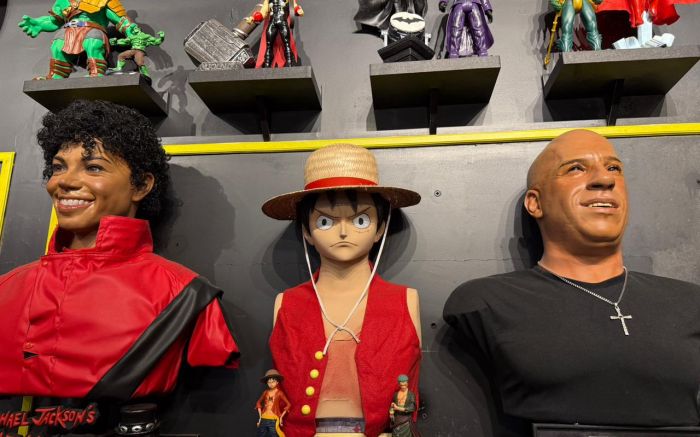 Quem nos recebeu foi Marcelo Basílio, amigo de Camilo e também carioca, que hoje trabalha na Burger Films e nos guiou por um tour inesquecível. Cada parede, cada prateleira, cada detalhe conta uma história. Bonecos e esculturas de personagens produzidos por artistas de Penha e região ocupam todos os espaços. Nada é aleatório: tudo é escolhido a dedo para emocionar quem cresceu assistindo a esses filmes.