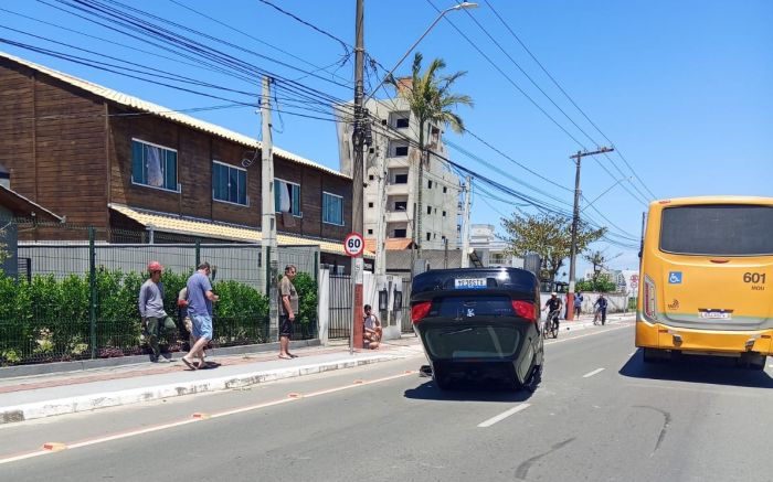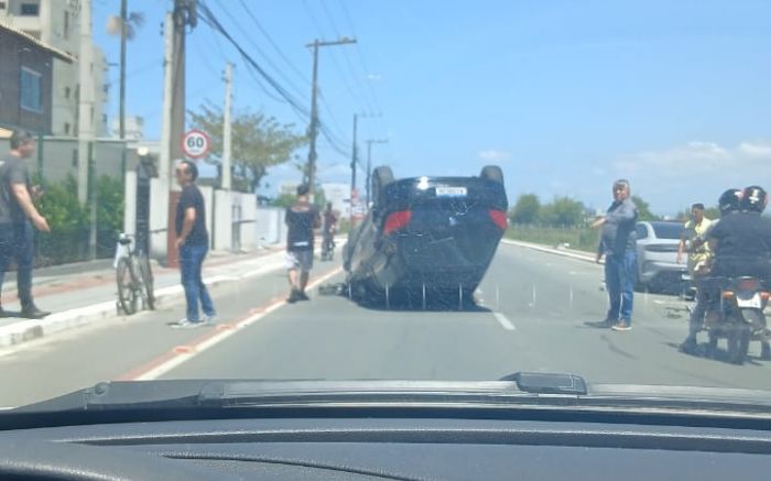 Já por volta do meio-dia desta quarta, um Peugeot preto capotou na avenida Prefeito José Juvenal Mafra, no Gravatá. Vídeos mostram um ocupante sendo retirado pela janela do veículo, que ficou com as rodas para cima. O motorista, segundo o Corpo de Bombeiros, tem problemas cardíacos e passou mal ao volante, perdendo a direção e capotando o Peugeot. Apesar do susto, ele teve somente escoriações na mão esquerda.