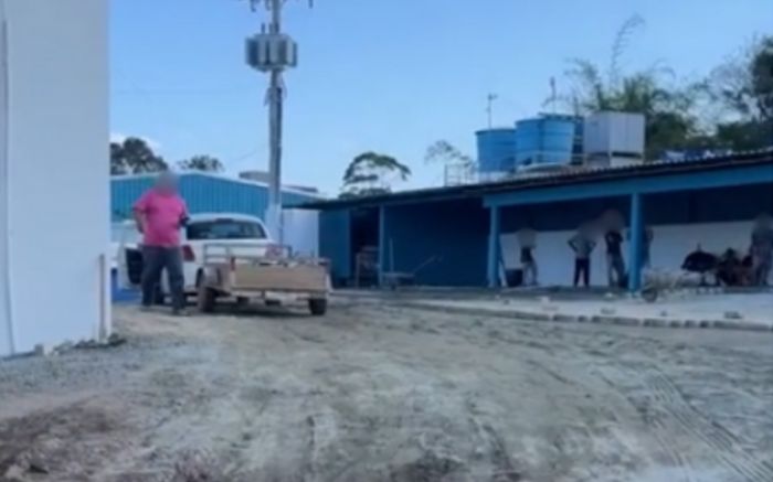 Ao seguir os veículos e constatar que pertenciam a uma construtora, Maicon viu os pavers sendo descarregados e já sendo usados no pátio de uma empresa de pescados, ou seja, em espaço privado. O vereador chegou a conversar com o responsável pela construtora e alega ter sido “cercado” por funcionários da empresa.