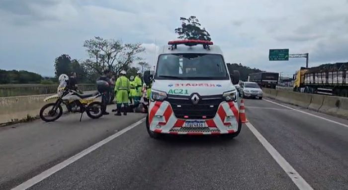 Os policiais aguardavam a chegada da Polícia Rodoviária Federal para que os motoristas que tiveram os carros atingidos pudessem registrar o boletim de ocorrência. O homem foi levado para atendimento médico.