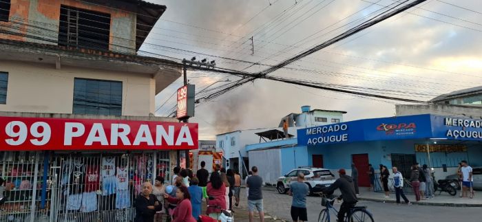 Equipes foram acionadas na manhã deste domingo para conter as chamas próximas ao supermercado Uber