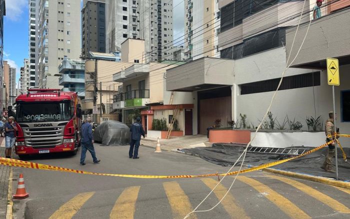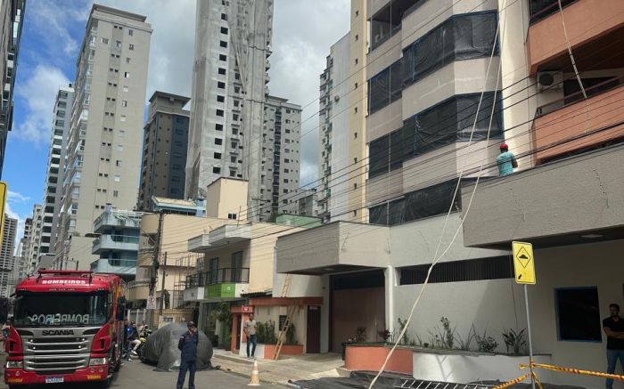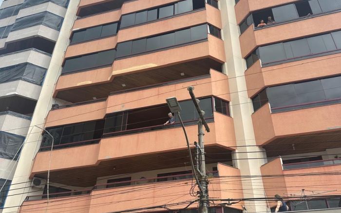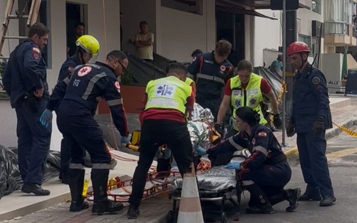 Um pintor caiu de cerca de 20 metros na manhã desta segunda-feira, por volta das 10h, enquanto trabalhava na pintura da fachada de um prédio na rua 266, no bairro Andorinha, em Itapema.