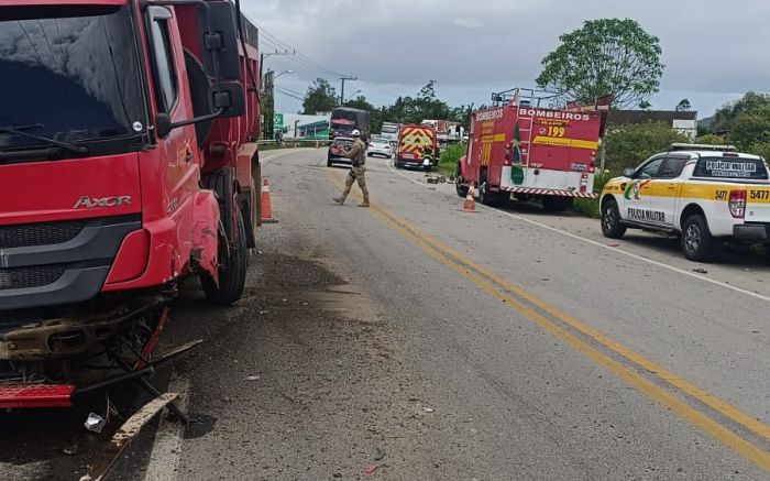 Uma colisão entre um carro e um caminhão matou uma pessoa no início da tarde desta terça-feira, na rodovia Jorge Lacerda, na altura do quilômetro 8, na Barra de Luiz Alves, em Ilhota. O motorista do carro morreu preso às ferragens.