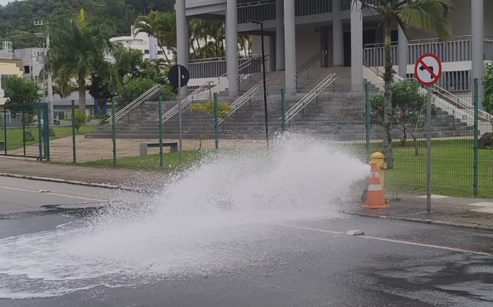 Hidrante em frente ao fórum vira chafariz; veja o vídeo
