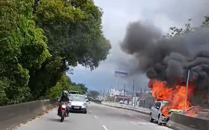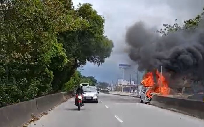 Testemunhas relataram que o fogo começou na parte da frente do carro, no motor. Em vídeos registrados por populares, o veículo aparece parado sobre o canteiro central, no trecho onde termina a mureta de proteção que divide as pistas, e é rapidamente consumido pelas chamas.
