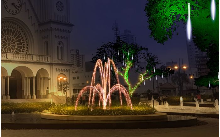 Serão 500 mil lâmpadas, o dobro do ano passado, iluminando ruas, praças e prédios históricos. Os cenários natalinos terão presépios, projeções de luz e neve artificial, transformando o centro e os bairros.