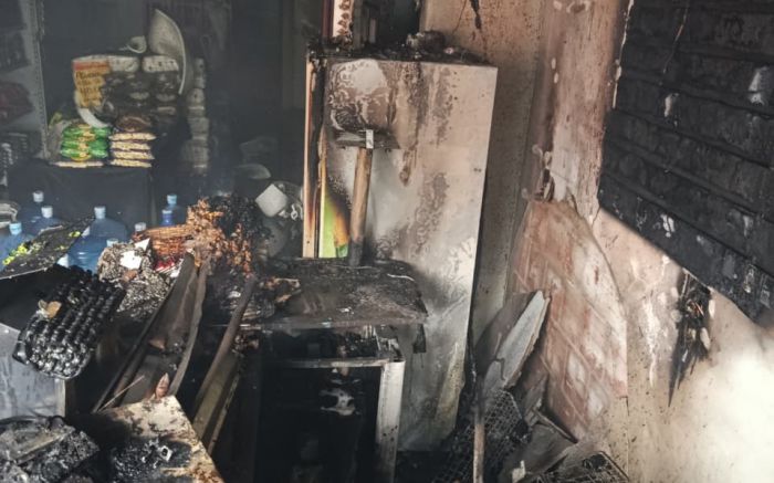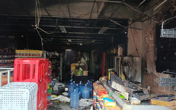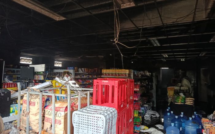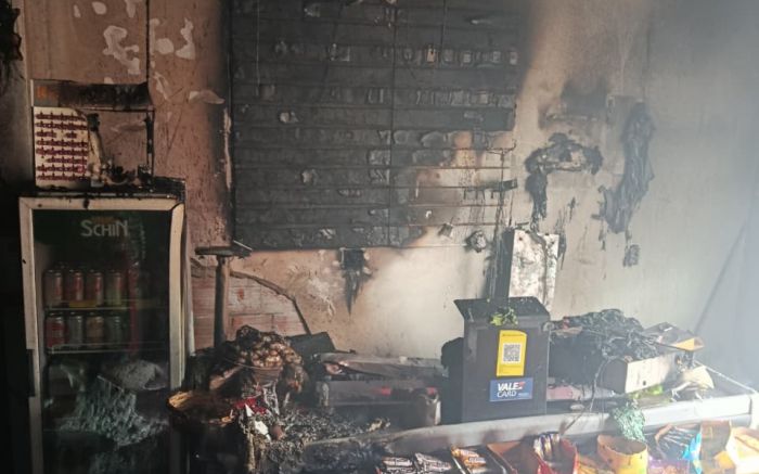Fogo começou perto do caixa e danificou teto, paredes e mercadorias do local
