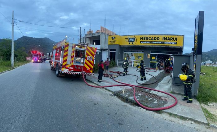Um incêndio atingiu o Mercado Imaruí, no bairro Rio Pequeno, em Camboriú, no início da manhã desta sexta-feira. O fogo começou por volta das 5h20 e mobilizou equipes dos bombeiros de Camboriú e Balneário Camboriú.