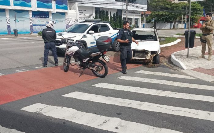 O veículo só parou ao bater contra uma placa de sinalização. Agentes de trânsito atenderam à ocorrência e fizeram o teste do bafômetro com o motorista, que deu negativo. O homem não ficou ferido. A Polícia Militar também esteve no local e assumiu a ocorrência.