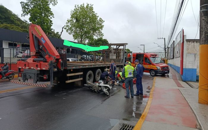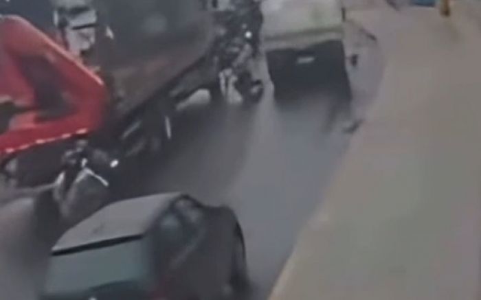 O motociclista Jamisson de Jesus Santos, de 29 anos, morreu atropelado por um caminhão na manhã desta terça-feira, na avenida Santa Catarina, no centro de Camboriú. Um vídeo mostra o momento em que ele segue pelo corredor entre dois caminhões, escorrega e cai com a cabeça embaixo do veículo, próximo ao número 932 da via.