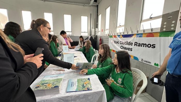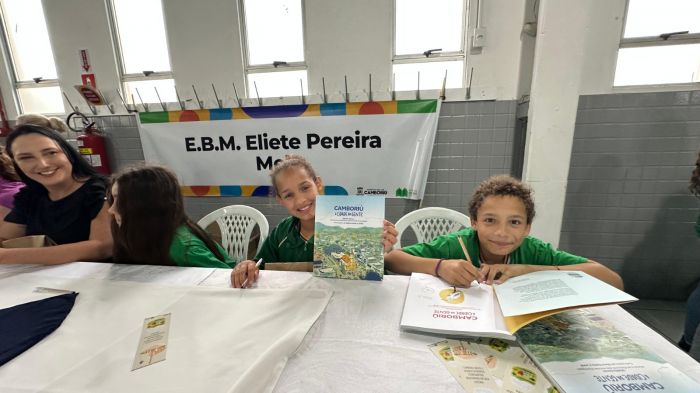 O livro “Camboriú – A cidade da gente”, escrito por alunos da rede pública e patrocinado pela Águas de Camboriú por meio da Lei Federal de Incentivo à Cultura, a Lei Rouanet, foi lançado na tarde desta segunda-feira em evento marcado por emoção, casa cheia e muitos autógrafos. A obra é resultado de um ano inteiro de pesquisas sobre os patrimônios cultural, ambiental e histórico do município, conduzidas por 13 turmas de quatro escolas: GEM Andrônico Pereira, EBM Clotilde Ramos Chaves, EBM Eliete Pereira Melo e EBM Lucinira Melo Rebelo.