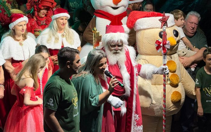 Quem passou pela Praça da Paz, em Itapema, nesta terça-feira, teve a sensação de que o Natal chegou de verdade. Não foi só o acender das luzes que chamou atenção. Foi o clima. Um mar de gente ocupou cada cantinho da praça, o corredor central, as laterais e até a rua em frente, tudo para ver a entrega simbólica da chave da cidade ao Papai Noel e abrir, juntos, a temporada natalina.