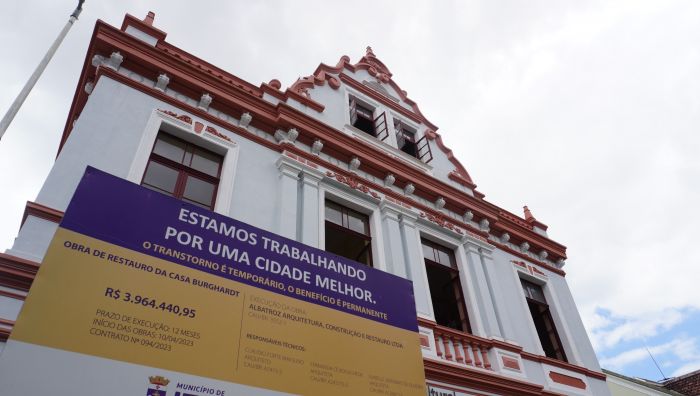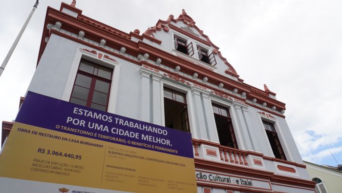 A ordem de serviço para o restauro da Casa Burghardt foi dada em abril de 2023, inicialmente com prazo de 12 meses e valor de R$ 3,9 milhões. Os trabalhos pouco andaram em 2024, avançando só a partir do segundo semestre deste ano, com pagamento de R$ 304 mil do contrato.