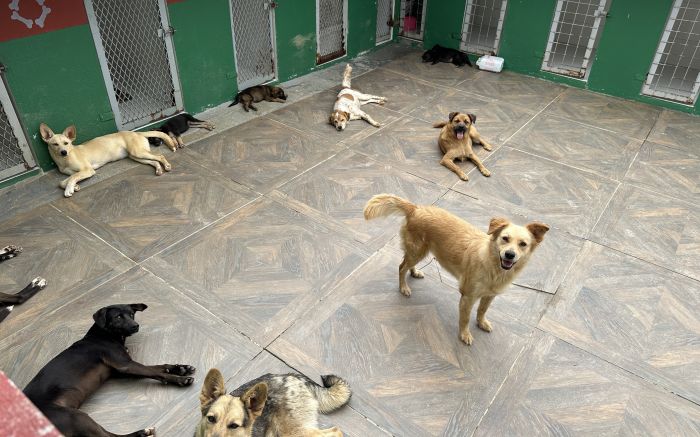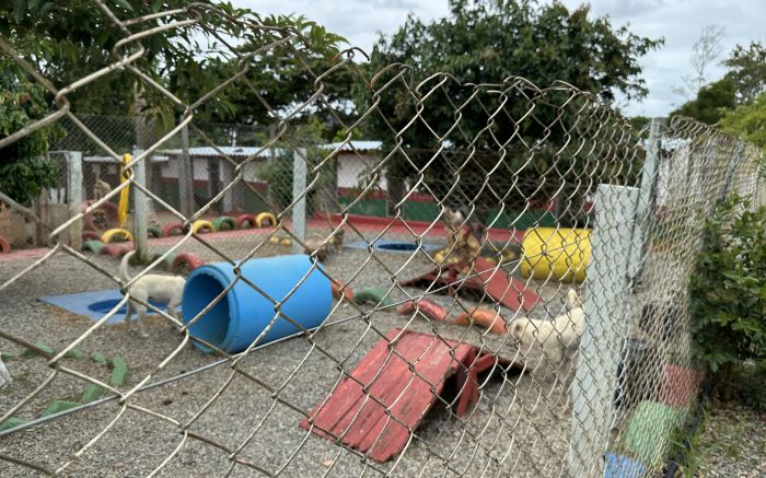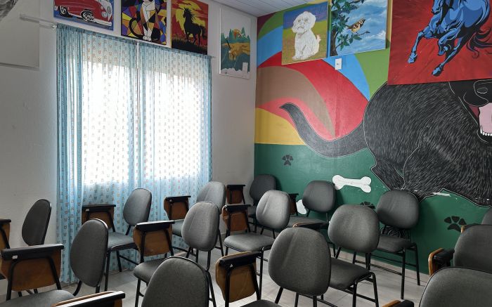 O ReabilitaCÃO funciona em uma área verde do complexo, longe do movimento de presos e visitantes. O local tem escritório, depósito de ração e medicamentos, sala de aula, estrutura de banho e tosa e canis divididos em cinco espaços, além de uma maternidade. “A ideia é justamente deixá-los soltos o dia inteiro, porque tem piscina, tem brinquedo, tem acolhimento, tem comida”, explica Bruna. Segundo ela, isso faz diferença no comportamento dos animais. “Quando o pessoal conhece o ReabilitaCÃO, eles sempre comentam: como os animais são calmos”, completa.