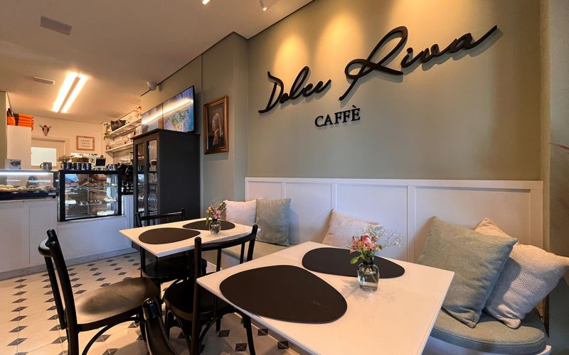 Em frente à avenida Atlântica, o Dolce Riva combina o charme das cafeterias italianas com o frescor da praia. Inspirado em uma viagem a Veneza, o espaço reúne café, bistrô e empório gourmet.