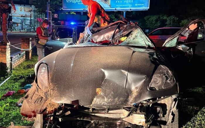 Ela era passageira de um Porsche Macan que bateu contra um poste de iluminação e, em seguida, em um muro. A motorista do veículo perdeu o controle da direção.