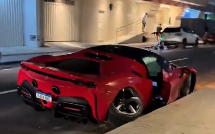 Uma Ferrari SF90 Stradale, avaliada em cerca de R$ 5 milhões, foi abandonada com o pneu estourado e o airbag disparado na rua 1101, em frente ao edifício Camboriú Business Center, no centro de Balneário Camboriú. As imagens do carro começaram a circular nas redes sociais nesta semana, mas o caso aconteceu na madrugada de 7 de dezembro.