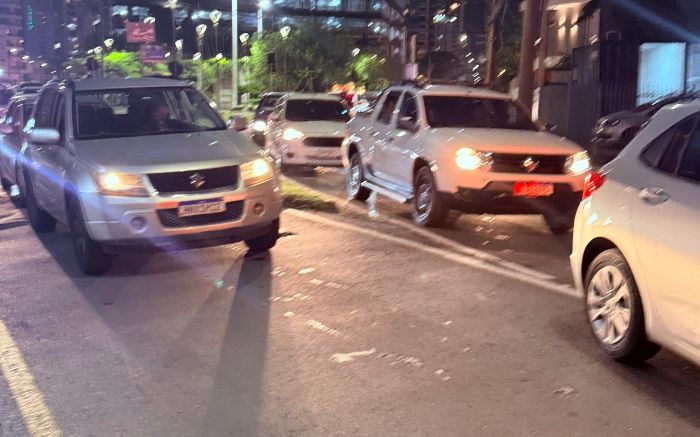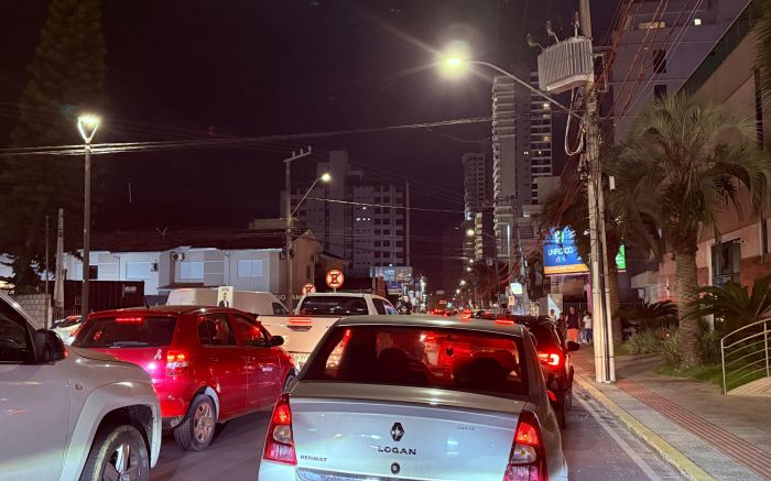 O caos se formou porque a Codetran interditou a Beira Rio para o desfile, desviando o tráfego de quem vinha de Cabeçudas para a rua Telêmaco Pereira Liberato. Ao mesmo tempo, o trânsito, no sentido contrário, de quem vinha da rua Camboriú também era desviado para a mesma via.