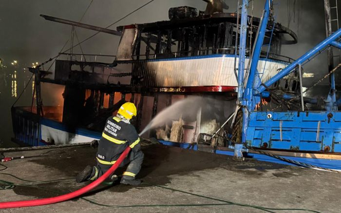 O fogo começou por volta da meia noite e foi combatido por equipes do Corpo de Bombeiros Militar. Quando os socorristas chegaram, a parte superior do convés já estava tomada pelas chamas.
