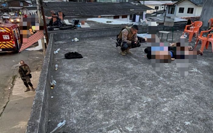 Agressores jogaram foguetes contra a base fixa da Polícia Militar no bairro Nossa Senhora das Graças, o Matadouro, em Itajaí, no começo da noite de sábado. O ataque deixou um policial ferido e terminou com dois suspeitos presos por tráfico de drogas e outros crimes. Um dos bandidos também ficou ferido. A base faz parte da Operação Recomeço e está fixa na entrada do bairro, às margens da avenida Contorno Sul.