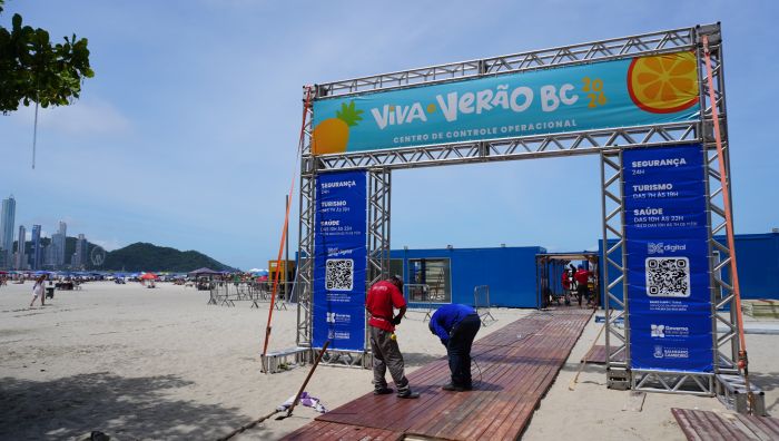 A praia Central de BC, no trecho em frente ao calçadão da avenida Central, está recebendo a montagem do Centro de Controle Operacional (CCO). A estrutura vai reunir forças de segurança com funcionamento 24 horas por dia, com a presença da Guarda Municipal e da Polícia Militar.