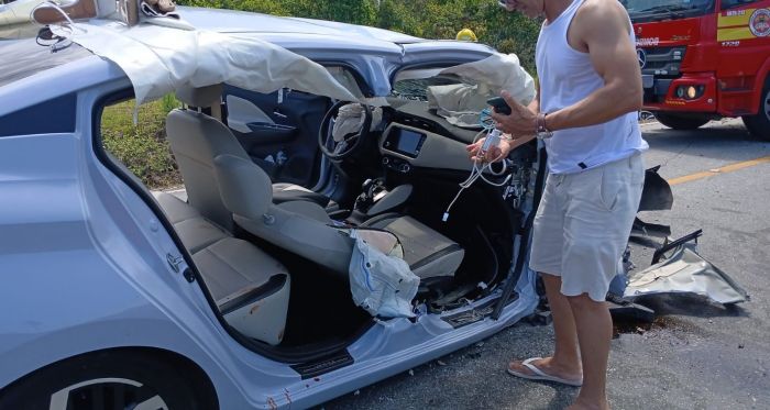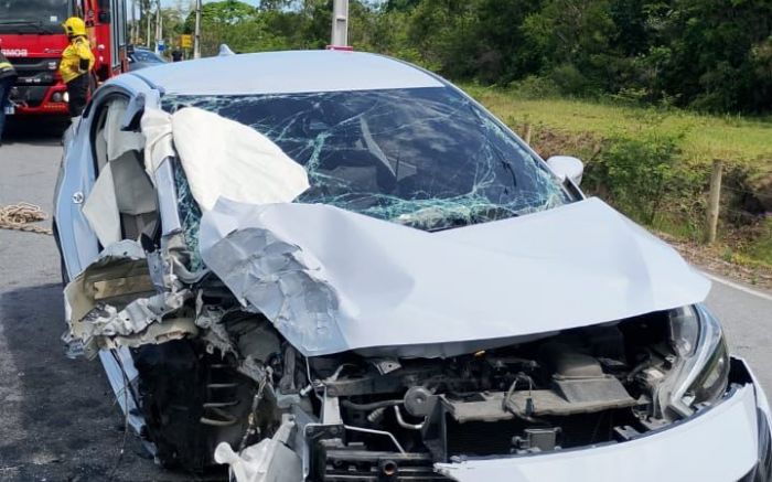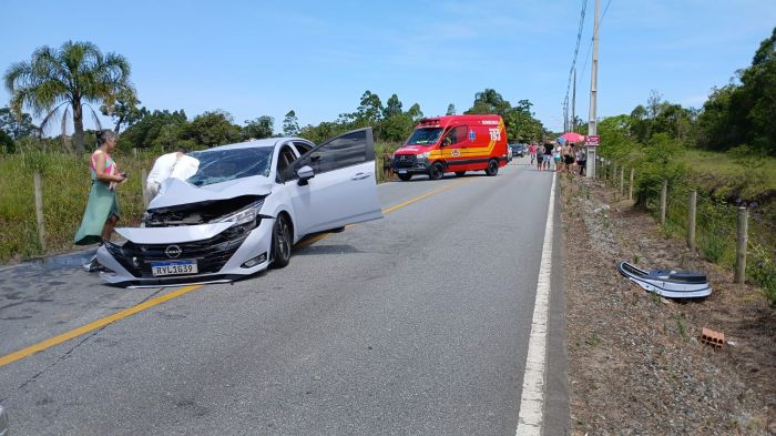 Um grave acidente de trânsito marcou o início da tarde deste Natal em Araquari. Por volta das 13h30, um Nissan Versa atingiu em cheio um poste na avenida Maringá, no bairro Itapocú, e rodopiou após o impacto.