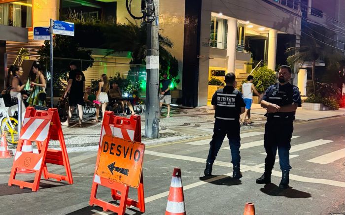 A avenida Atlântica será bloqueada entre a rua 3000 e a rua 1101, a partir das 20h30, com previsão de liberação às 4h do dia 1º. Todas as vias de acesso ao trecho serão fechadas com gradis e sinalização, e o trânsito será desviado.