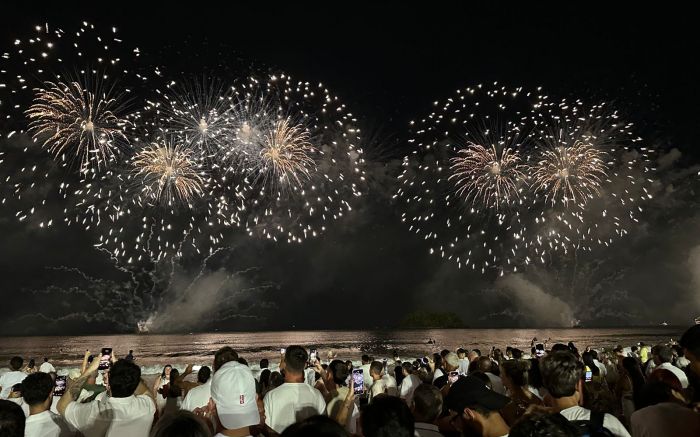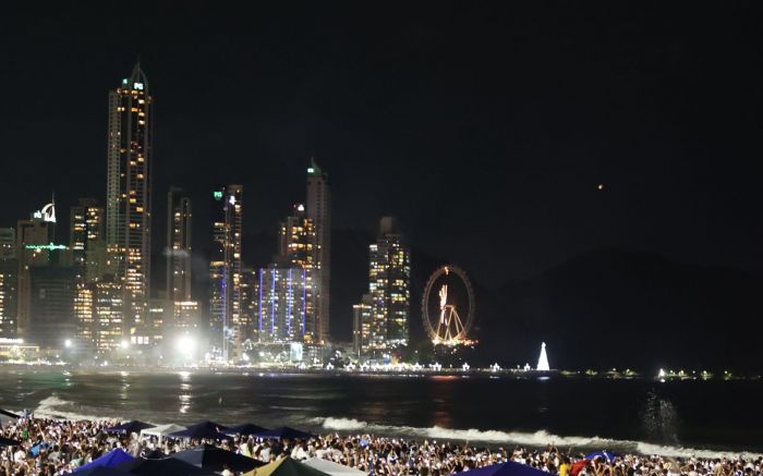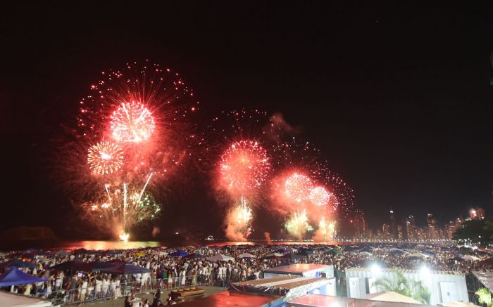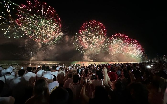 Mais de um milhão de pessoas receberam 2026 nas areias da praia Central, um dos principais cartões-postais de Santa Catarina. Após a contagem regressiva na roda-gigante da Barra Norte, o público acompanhou 15 minutos de espetáculo pirotécnico com 16 tipos diferentes de fogos, com