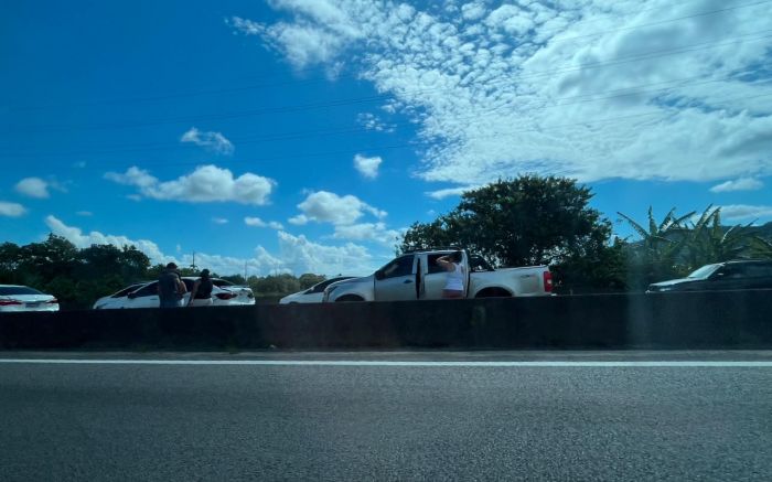 Batida entre quatro carros complica o trânsito na BR 101, em frente ao posto Mime (Foto: Ana Zigart)